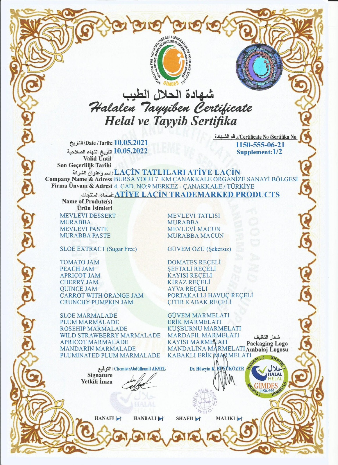 Atiye Laçin Gıda has an assertive commitment to its quality. In order to produce high quality products, it takes care to maintain its quality by selecting its raw materials from reliable suppliers who sell only the best quality products. Fulfilling the requirements of quality management systems; constantly improving its effectiveness. Thus, it can control every step of the product journey until it reaches its customers.